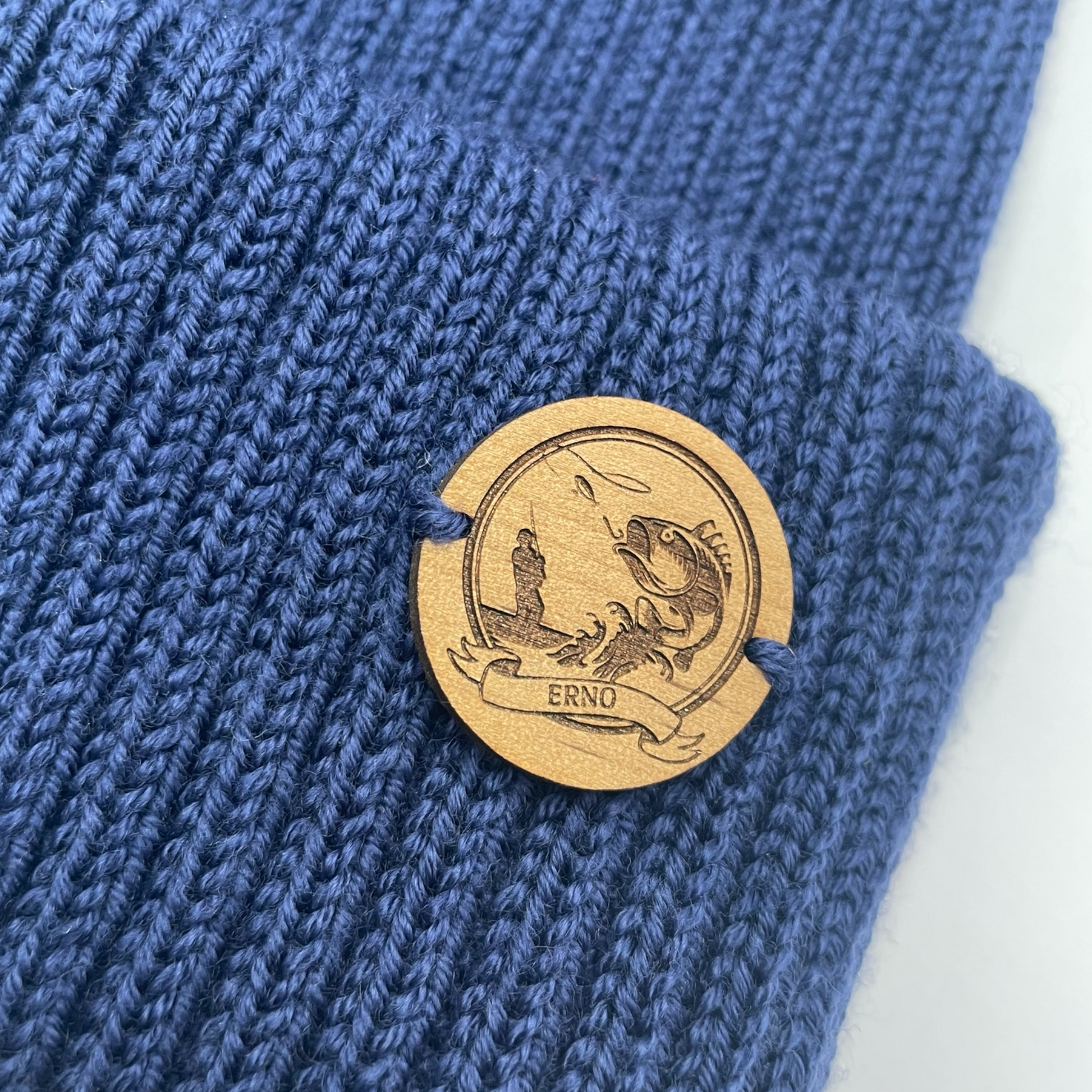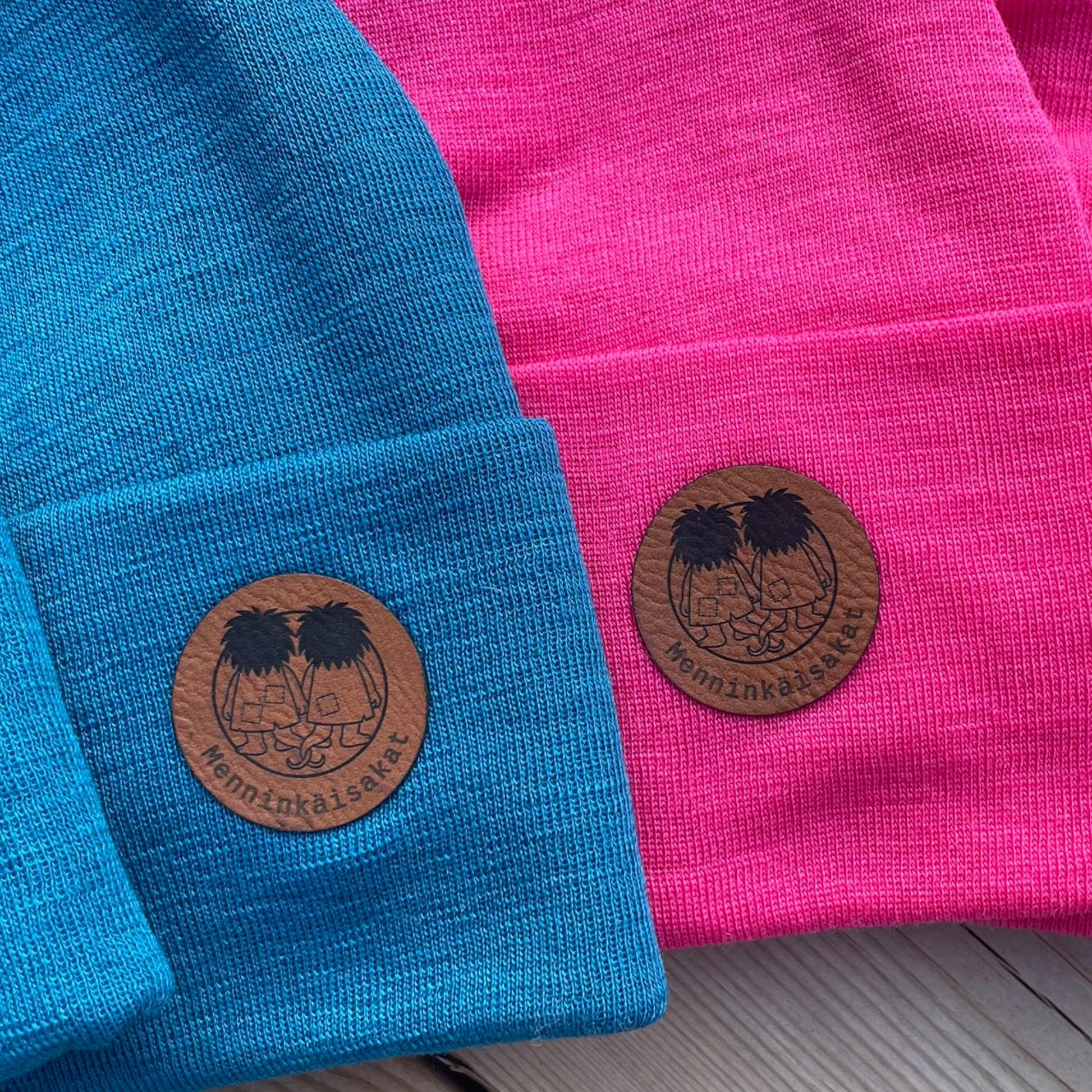 Logomateriaalin vaihtoehtoina meillä on 3mm koivu ja keinonahka. Suosittelemme koivuista merkkiä paksumpiin pipoihin ja keinonahkamerkkiä ohueen slim pipoomme.